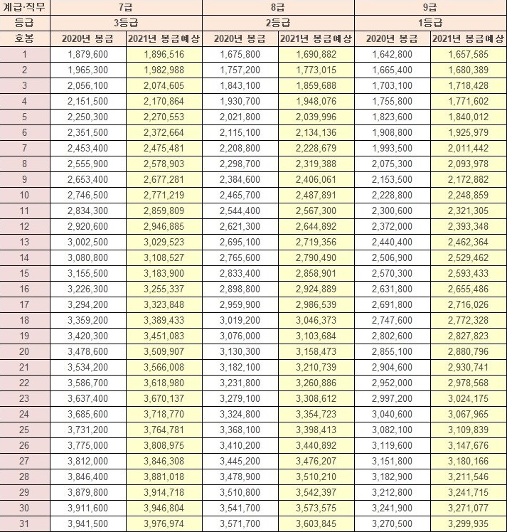2021 공무원 봉급 인상