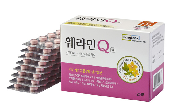 동국제약 훼라민큐(Q)는 IQVIA DATA 기준 여성 갱년기 치료제 일반의약품 시장에서 11년 연속 판매 1위를 차지하고 있는 서양승마와 세인트존스워트 성분의 생약복합제다. 여성 갱년기의 신체적·심리적 증상을 동시에 개선해 준다고 한다.