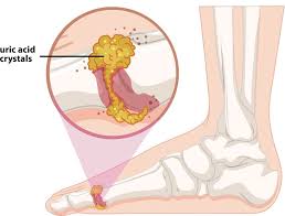 이러한 요산 결정은 관절, 연골 등에서 염증 및 통증을 동반한다고 한다.