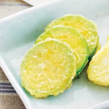애호박을 손질하여 먹기 좋은 크기로 슬라이스한 뒤 부침가루와 튀김가루를 1:1의 비율로 섞은 반죽을 묻히고 계란 옷을 입혀 노릇하게 구우면 완성된다고 한다.