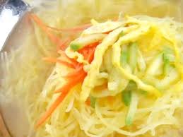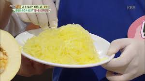 국수호박은 익히면 속살이 국수 가락과 비슷한 형태처럼 된다고 한다. 국수호박 효능은 식이섬유소가 풍부해 포만감을 주기 때문에 다이어트에 효과적이라고 한다.