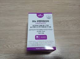 포뉴 코엔자임Q10 에는 순도 98%이상의 미국산 코큐텐을 식약처 최대 기준치 100mg이 함유되어 있다고 한다.